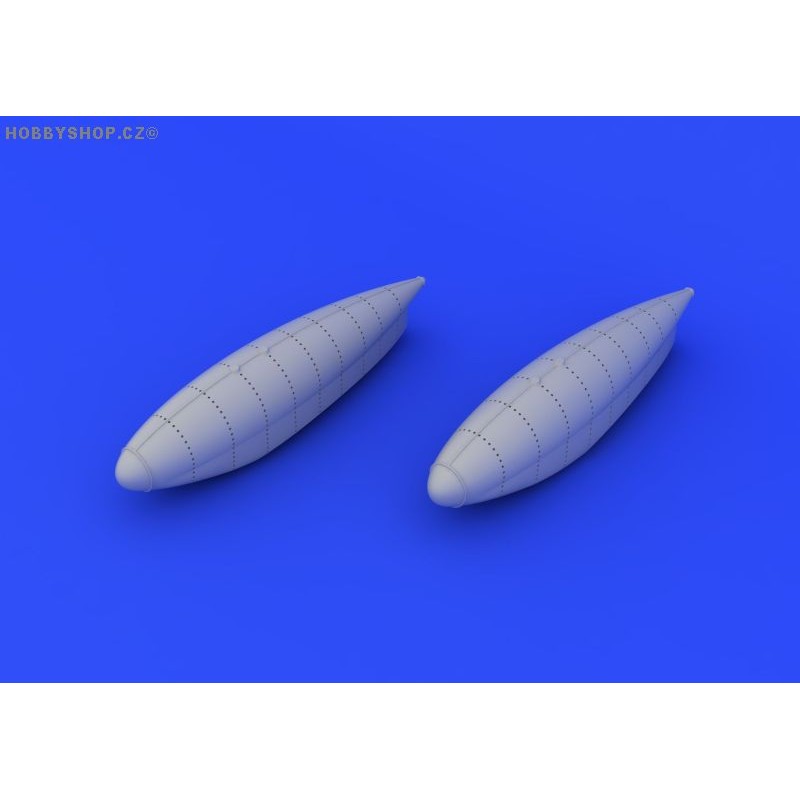 Brassin sada, přídavné 300 litrové nádrže pro MiG-15 v 1/72 od Eduardu.
